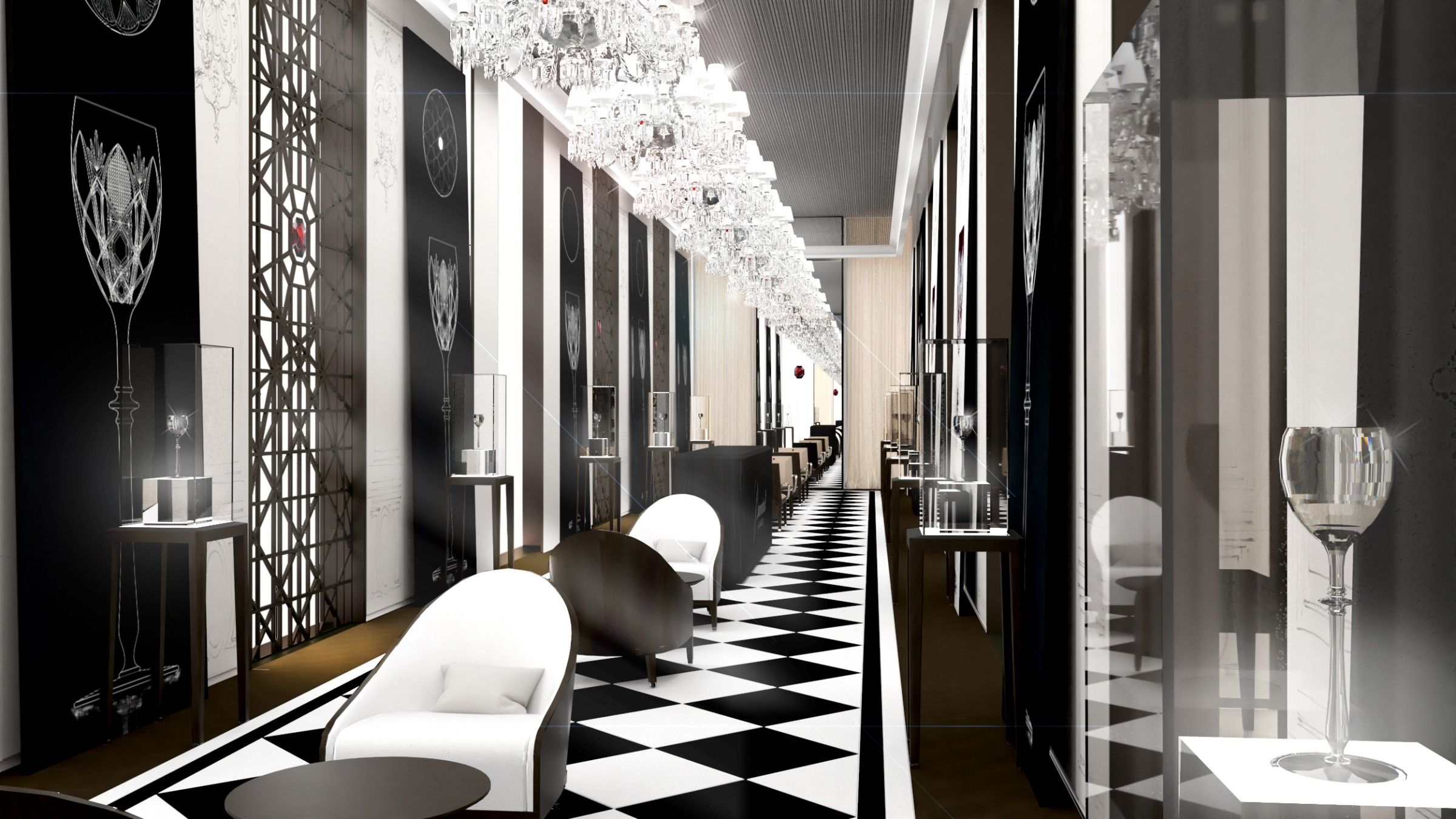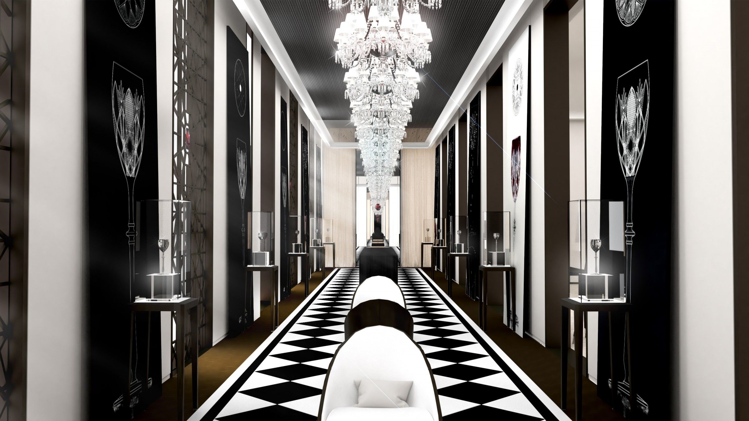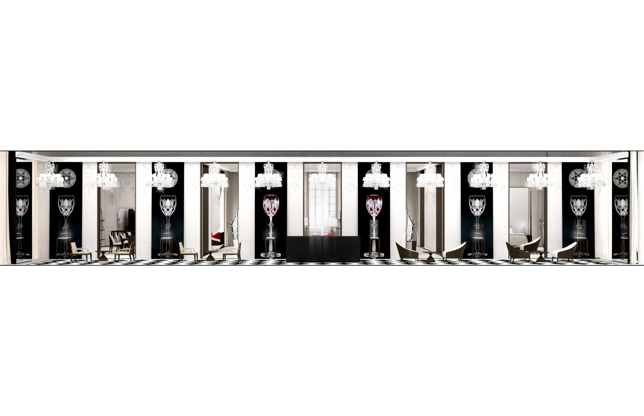 For Maison & Objet, Chafik imagined the Prohibition Pavilion: an exceptional apartment made up of large interconnecting rooms with a double living room, a dining room and a master bedroom. A long gallery where are exposed historical pieces of Baccarat goes through the whole space.