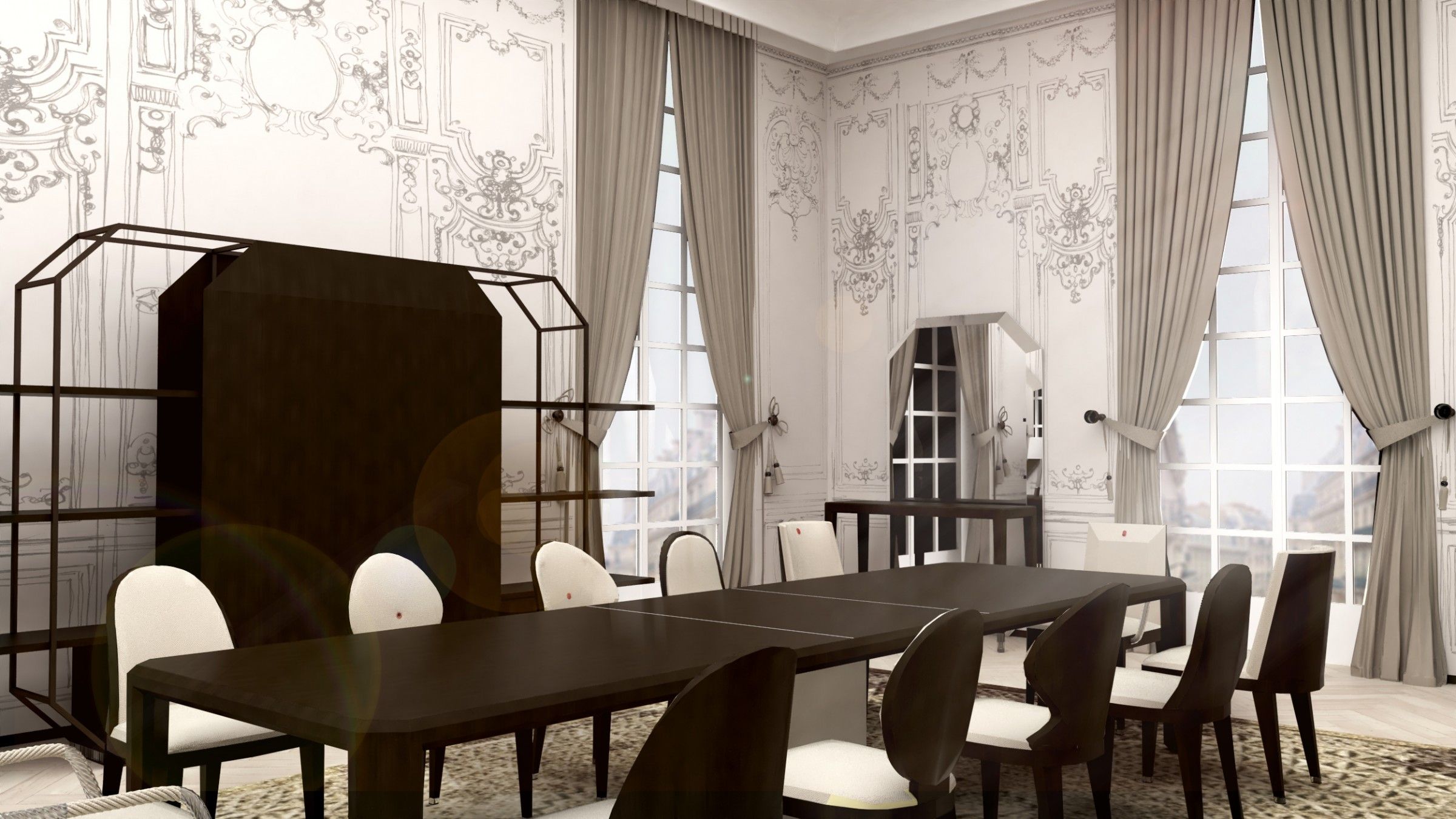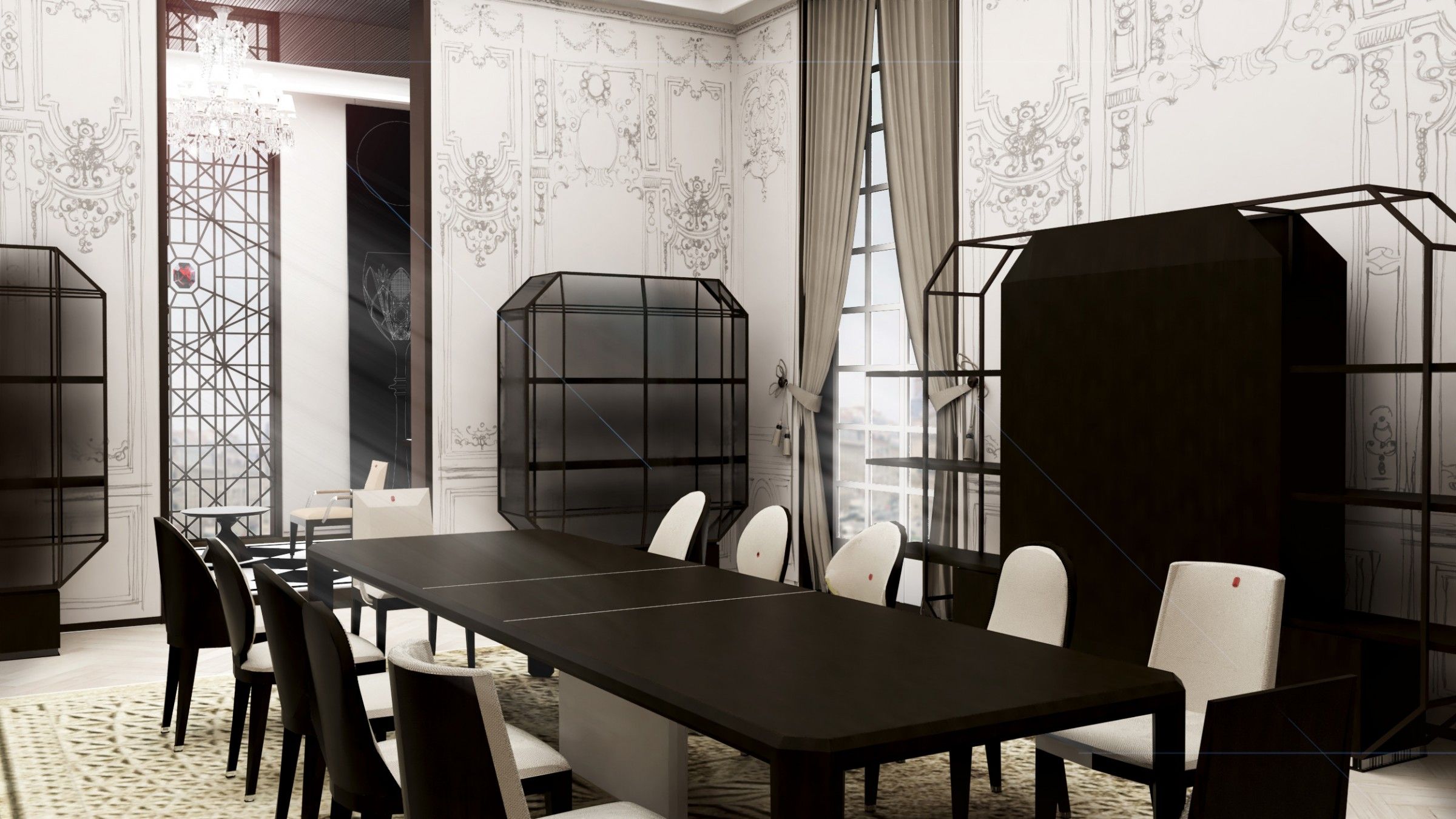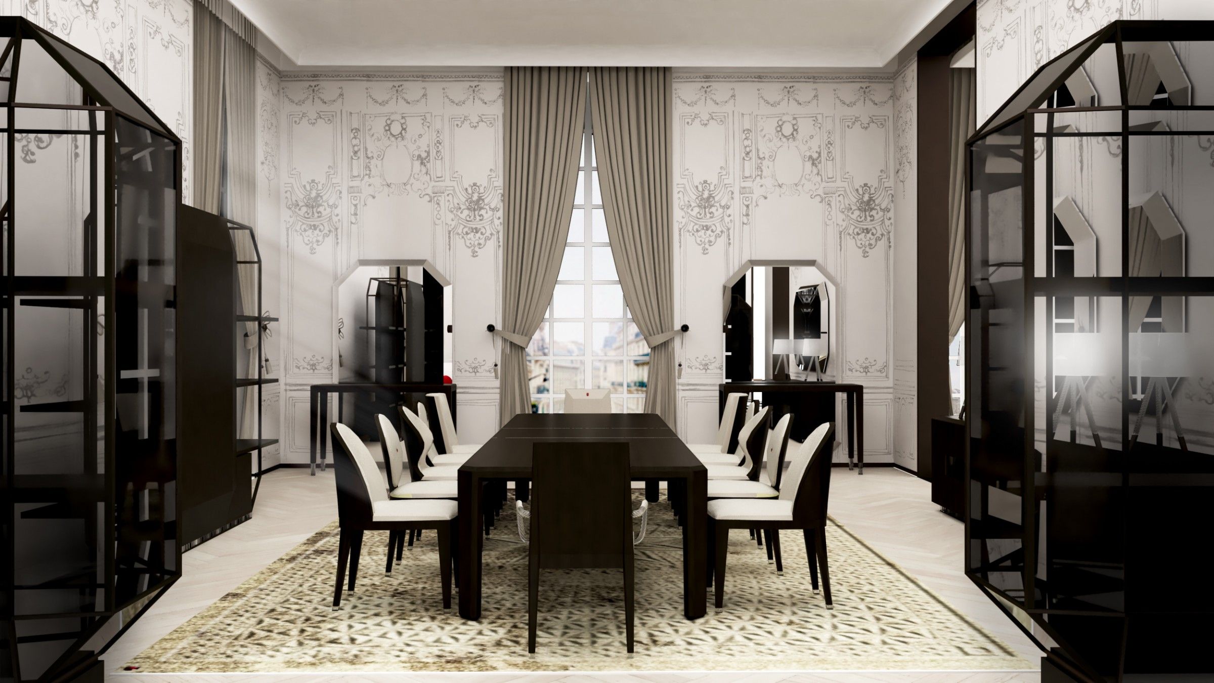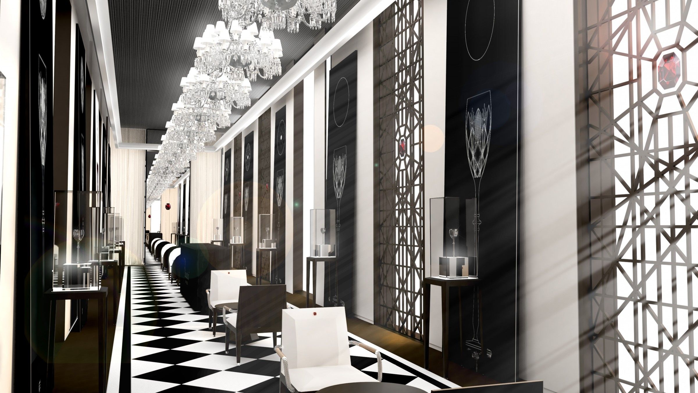 For Maison & Objet, Chafik imagined the Prohibition Pavilion: an exceptional apartment made up of large interconnecting rooms with a double living room, a dining room and a master bedroom. A long gallery where are exposed historical pieces of Baccarat goes through the whole space.