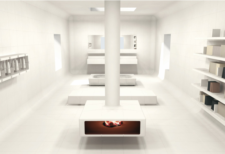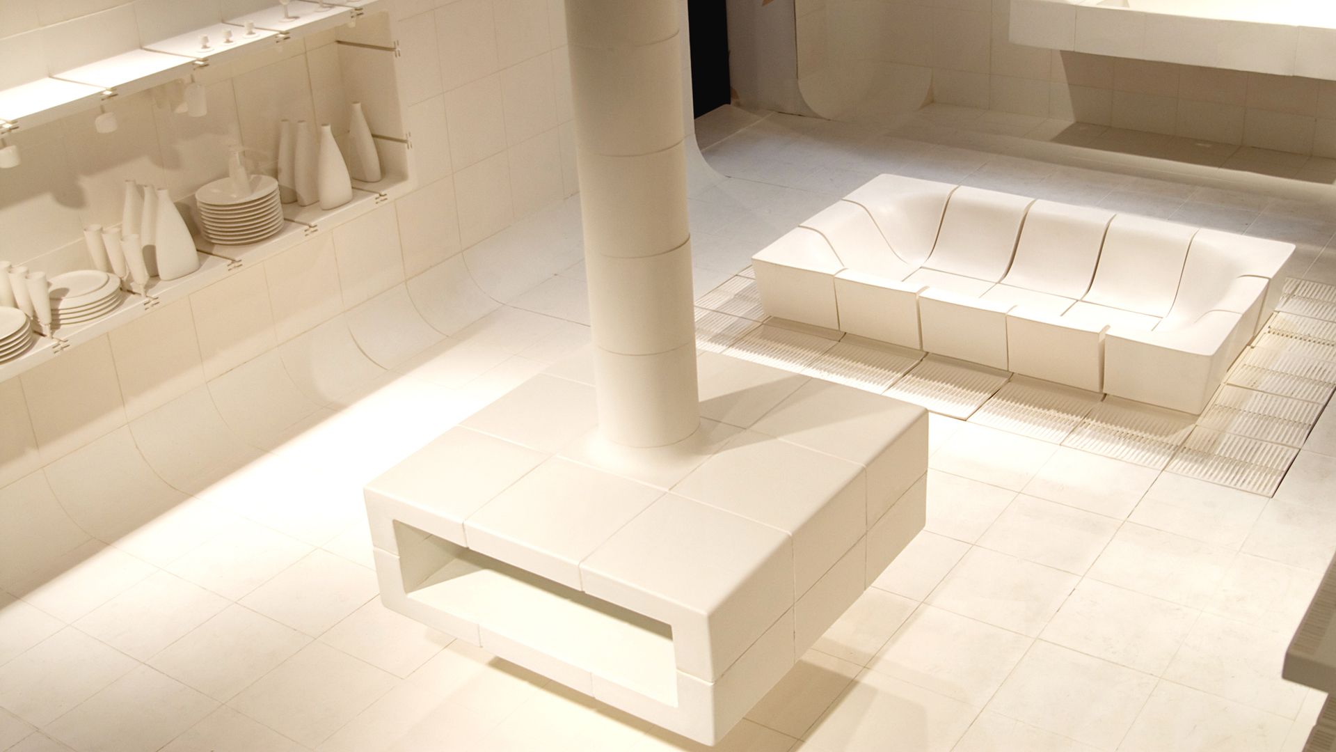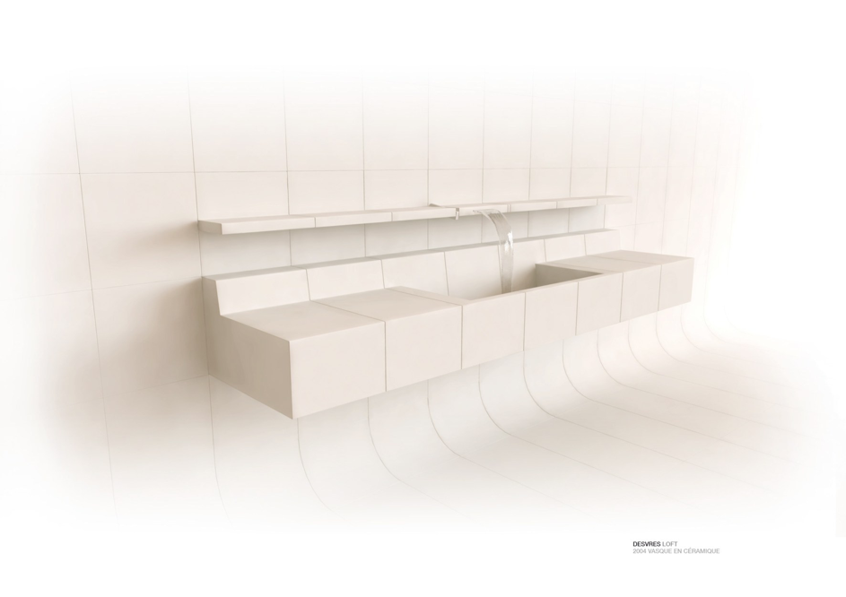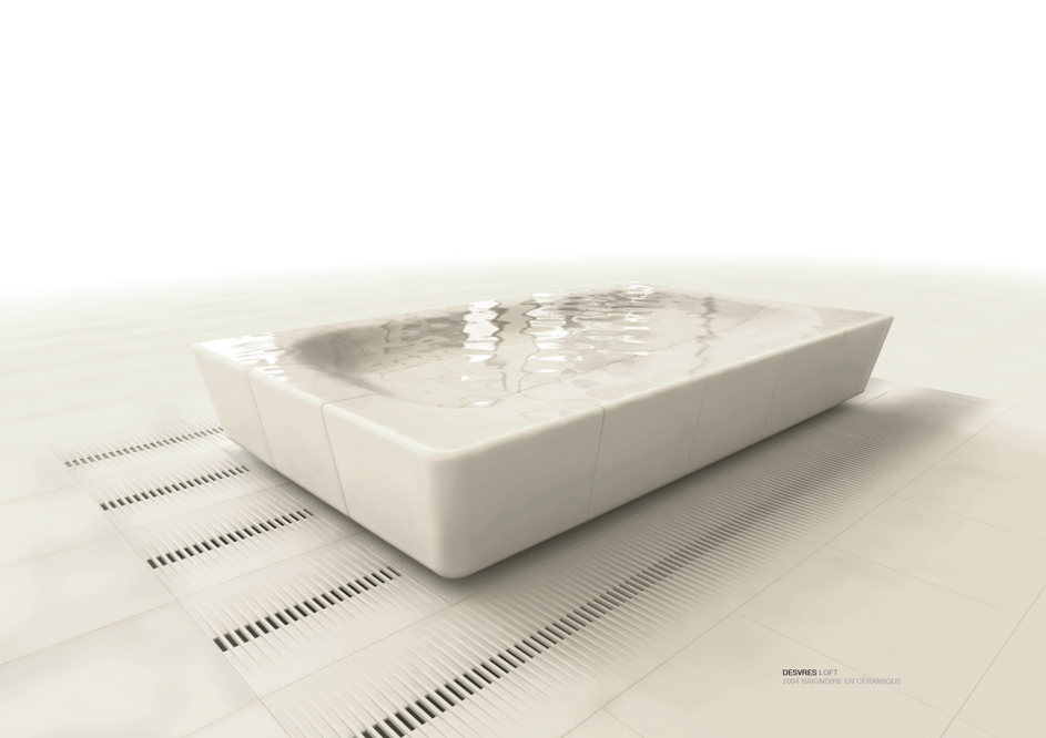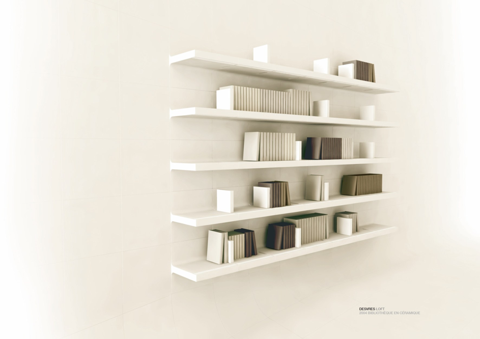In partnership with the DRAC, Desvres companies worked on a ceramic loft designed by Chafik. This loft was presented at the Maison & Objet fair in September 2006 and aimed to design an innovative project highlighting the know-how of ceramists in the region. Chafik imagined a loft composed of pieces of ceramic of 40cm by 40cm which, when put together, formed the furniture: library, fireplace, bath, bench, kitchen.