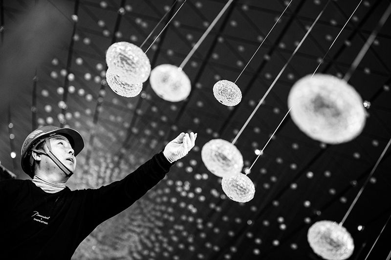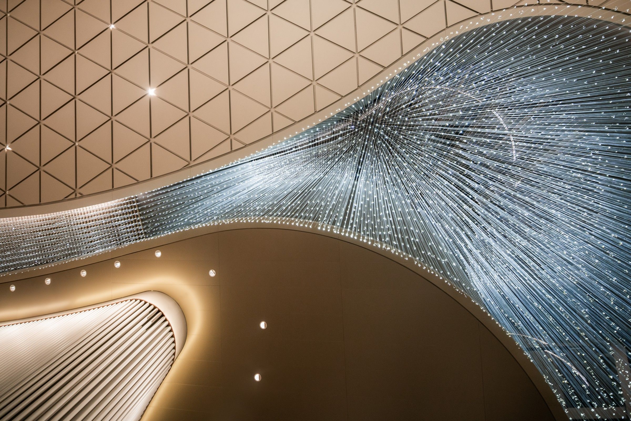 Chafik Studio, in collaboration with Baccarat, delivers for the Meritus tower in Beijing, The Trilogy: the largest lighting installation in the history of Baccarat combining more than 4800 lights. It is made up of three spectacular crystal chandeliers, Milky Way, Nebula and Venus, in a subtle alliance of know-how and technology.