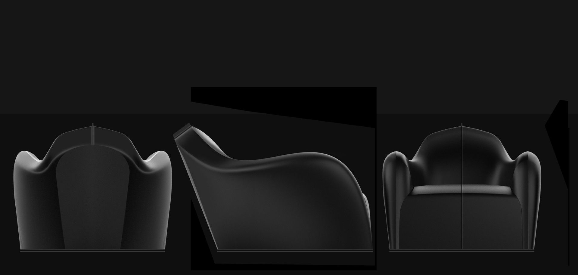 Dessiné par Chafik Studio, ce fauteuil rend hommage aux célèbres et mythiques voitures de course de la prestigieuse marque automobile Bugatti. Entièrement revêtu de cuir noir, son design dynamique présente des détails inspirés des fleurons de Bugatti : l’aileron dorsal de la Supercar, les courbes de l’emblématique radiateur frontal.